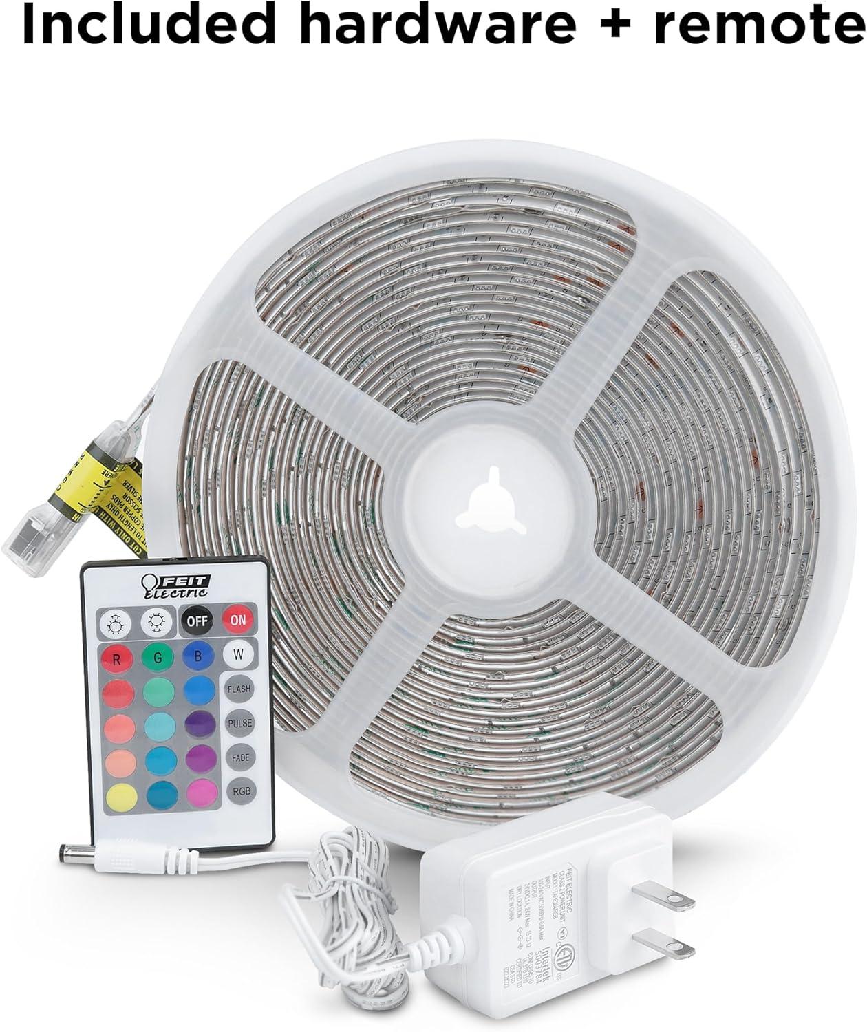 Feit Electric 32ft Color Changing LED Ultrathin Strip Light, Flexible, Cuttable, 16 Preset Colors, Adjustable Brightness & Effects, Remote Control Included, No Wi-Fi Needed, TAPE384/RGB