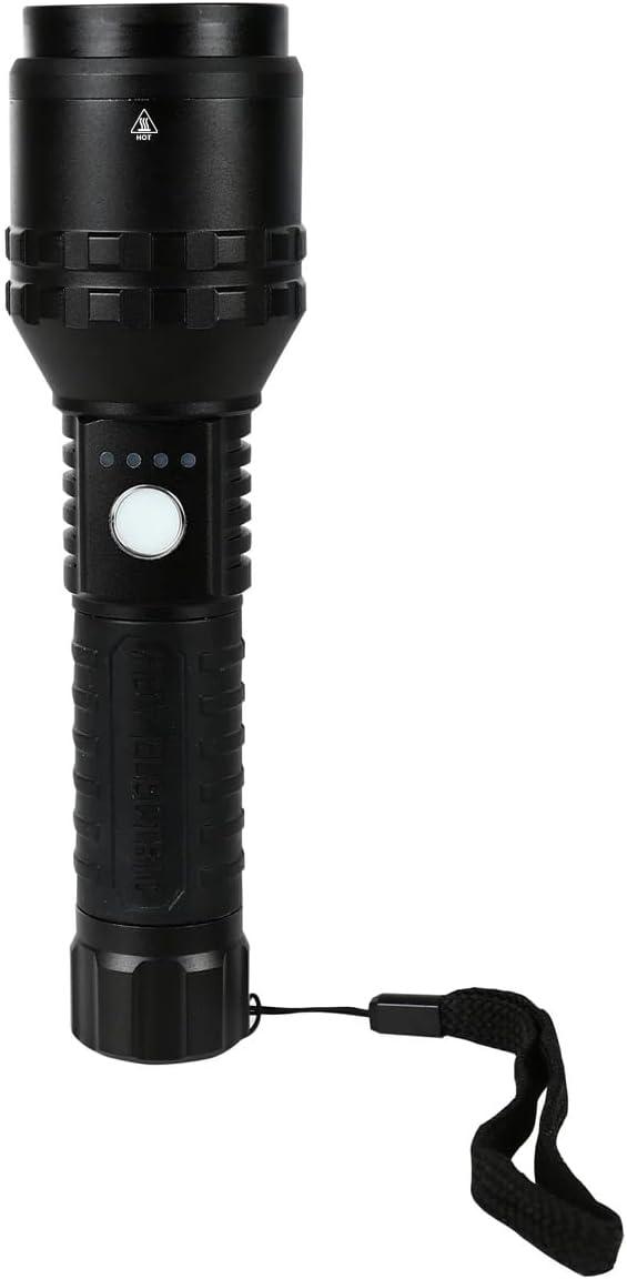 ADVANCED SAFETY & FUNCTIONALITY – Equipped with a rotary lock to prevent accidental activation and an induction probe that automatically turns the flashlight off when the lens is blocked, this flashlight is engineered for safety and efficiency. Choose from high, medium, or low light modes to adapt to your needs without wasting battery life.