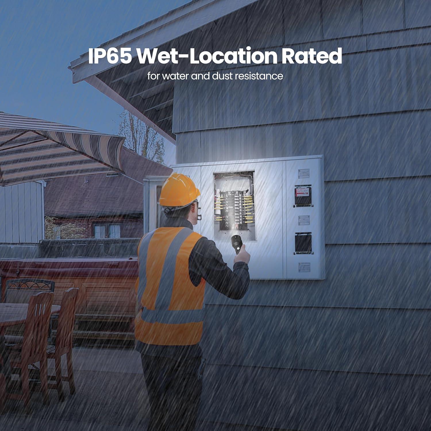 READY FOR ALL CONDITIONS – Rated for wet environments, this flashlight stands up to rain, splashes, and damp conditions, making it a dependable choice for outdoor use. Whether you need it for roadside emergencies, hiking trips, or home backup, it’s built to perform. Backed by a 1-year warranty, you can trust Feit Electric for quality and peace of mind.