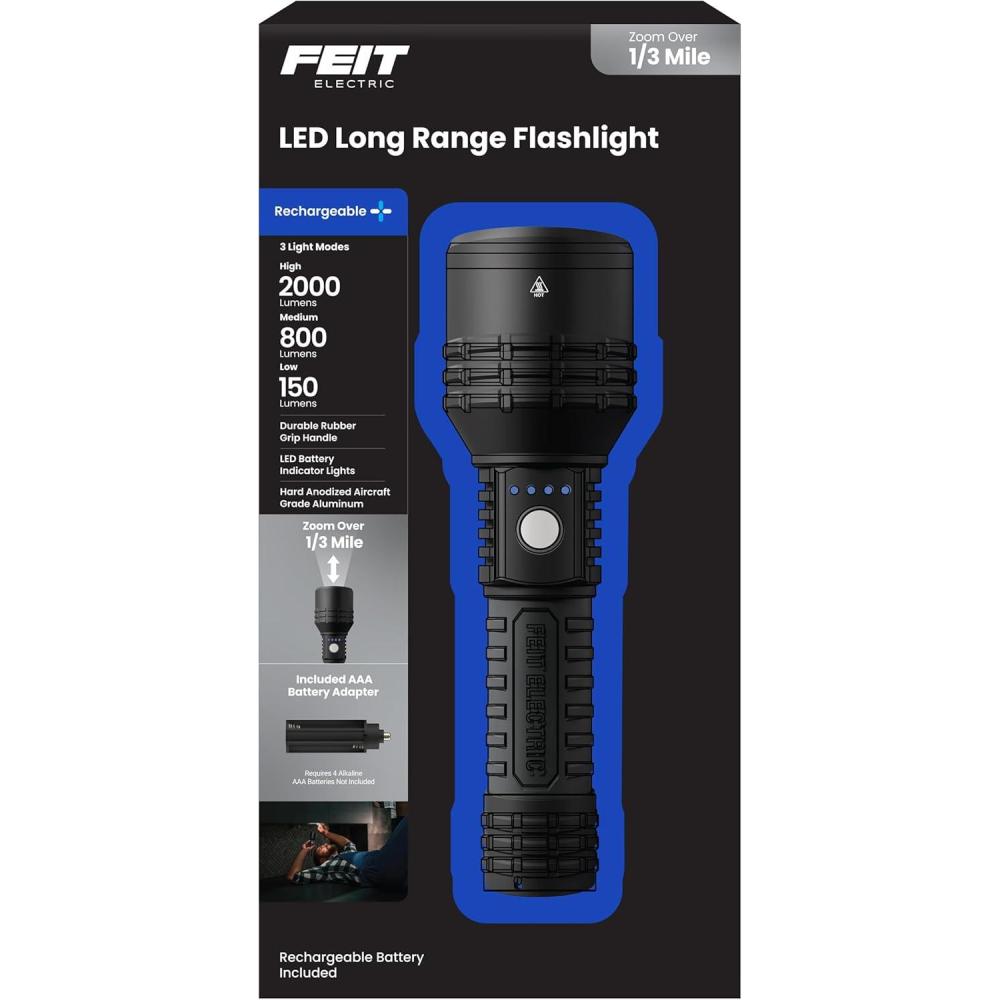 Be the first to review “Feit Electric Flex Power Flashlight, 7000 Lumens Ultra-Bright LED, Rechargeable & AA Battery Compatible, Aircraft-Grade Aluminum, USB-C Charging, 3 Light Modes, Wet Rated Emergency Light, FLR7000/FLEX(2000 Lumens)”