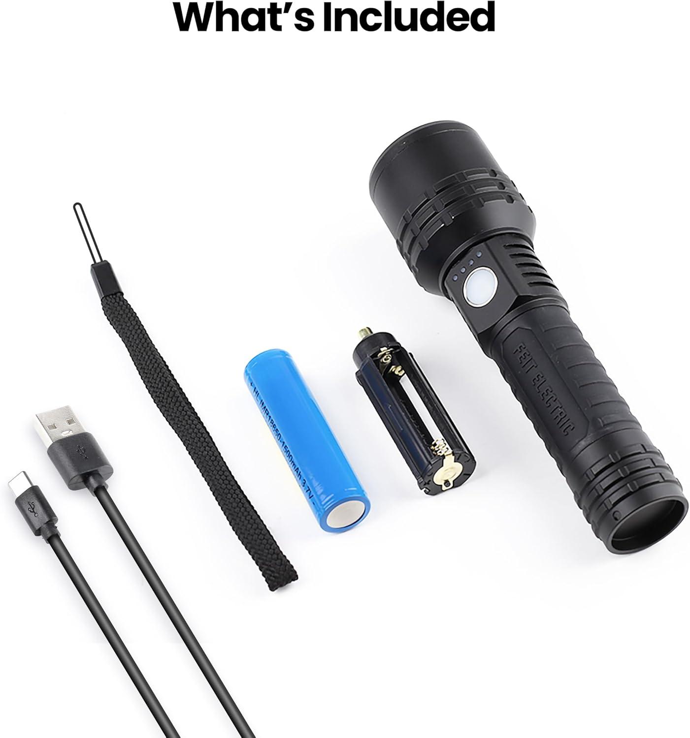 EXTREME BRIGHTNESS WITH ZOOM CONTROL – Light up any environment with up to 7000 lumens of powerful brightness. The Feit Electric FLR7000/FLEX Flex Power Flashlight features a twist head that allows you to zoom into a narrow beam for distance or widen the focus for large-area coverage, making it the perfect tool for camping, emergencies, outdoor activities, or tactical use.